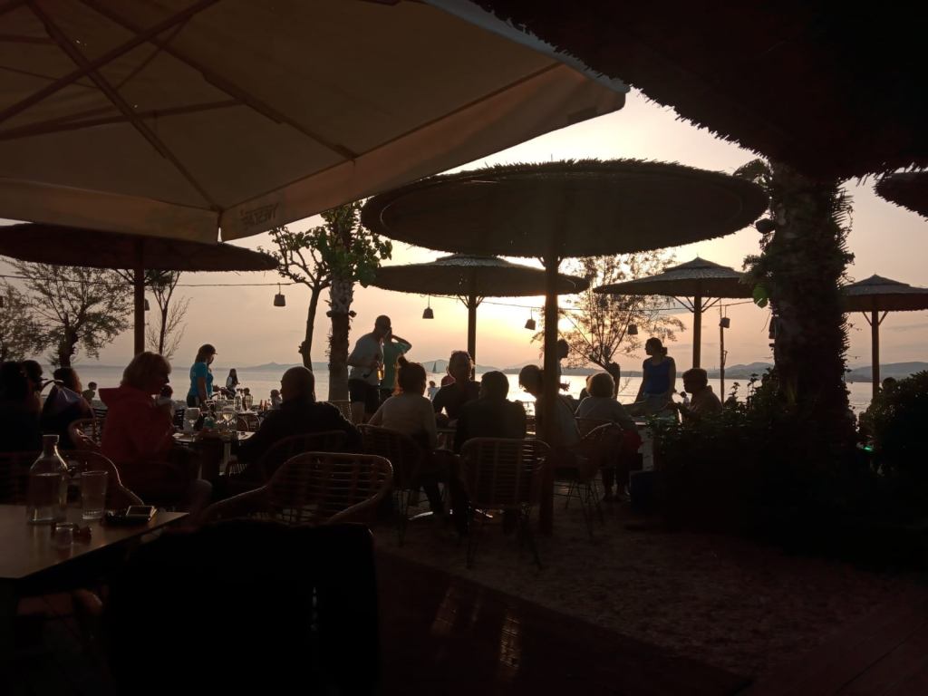 Meet and greet dinner with our new guests ON the beach in Alimos last night. Superb.