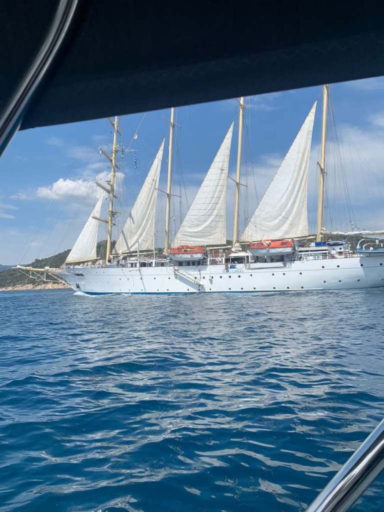 Glorious lunchtime stop yesterday, where we dropped anchor off Aegina island. Swam into the beach. Incredible turquoise water and white sandy seabed.